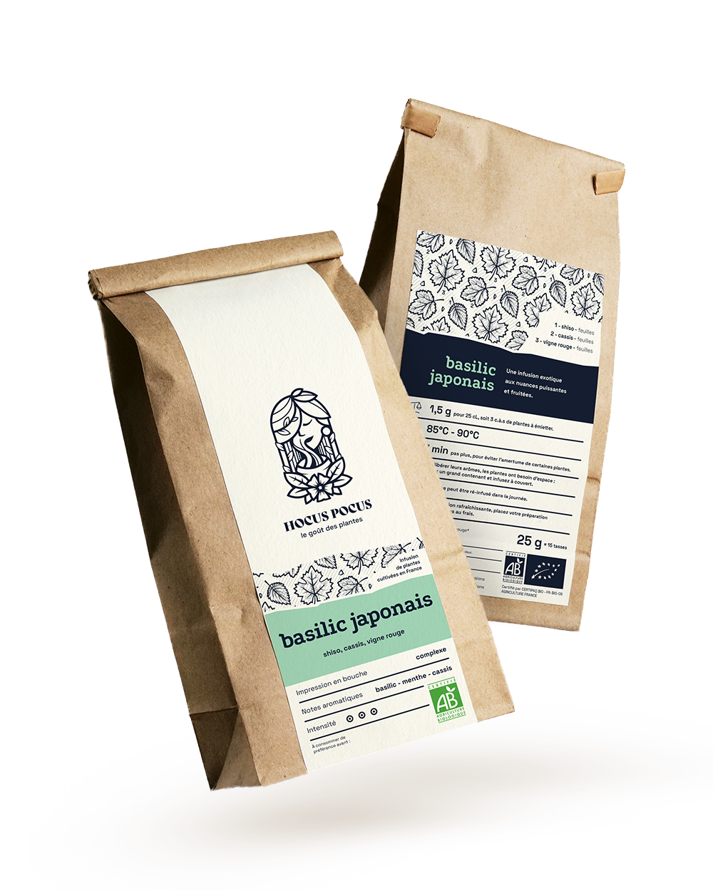 Poussés par une volonté de limiter notre impact environnemental, nous avons fait le choix d’un conditionnement en vrac. Nos sachets sont en papier kraft et le revêtement intérieur est en PLA, un bioplastique biodégradable et compostable. Cette barrière naturelle offre les mêmes performances de conservation que les plastiques traditionnels et garantit la fraîcheur de nos infusions.