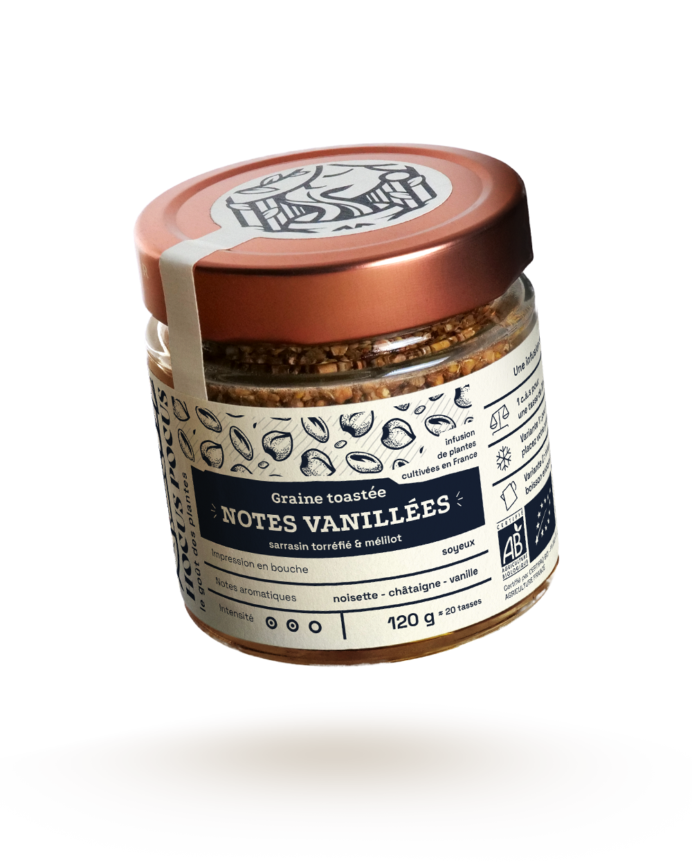 👄 À la dégustation, le sarrasin développe des arômes biscuités. Le mélilot apporte de la rondeur et adoucit l’ensemble grâce à ses notes vanillées. L’assemblage est réconfortant. Une texture soyeuse qui s’apprécie aussi dans un lait chaud pour renforcer son caractère gourmand.